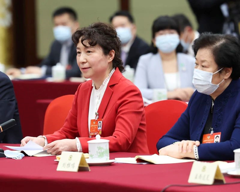 2022年全国两会上,全国政协委员王静(左)就筑牢农产品质量安全基石发言。新华社记者 黄敬文 摄